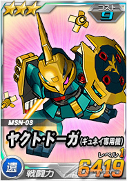 「クェス搭乗α・アジール」を倒した際に引くことができるチャンスガシャSには、「ヤクト・ドーガ(ギュネイ専用機)」を獲得できるチャンスがあるほか、 エースユニットガシャには「クェス搭乗α・アジール」に対し6倍の攻撃力を発揮する「νガンダム」が追加される。