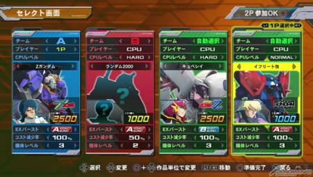 ▲「ブランチバトル」では、プレイスタイルや腕前に応じてシーン選択を行なう。また、味方CPUのコスト消費は半分になるため、戦力ゲージに注意して戦おう。