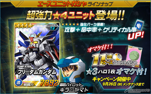 エースユニットガシャに「フリーダムガンダム」など「★4」機体追加!