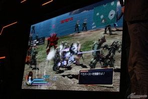ステージでは、2013年12月19日(木)発売予定のPS3・PS Vita「真・ガンダム無双」と、PS Vita版が10月31日(木)発売予定の「ガンダムブレイカー」の紹介と、ガンダムシリーズにておなじみの声優をゲストに迎えた実況プレイが行われた。