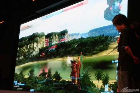 そして、ゲストによる実況プレイでは、まずは鈴村氏が巨大MA「ビグ・ザム」でプレイ。まったく新しい操作感に、鈴村氏は「原作を超えてるよ!超軽快に動きますね!」と大絶賛。
