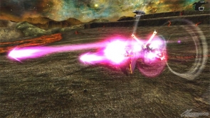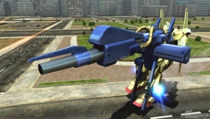 ▲飛行形態時のサブ射撃では、相手の攻撃を避けながら連続でビームを撃つ。