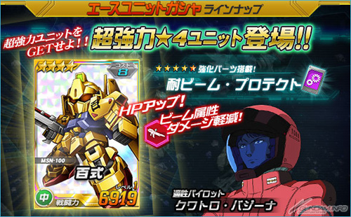 エースユニットガシャに「★4 百式」、「★3 陸戦型ガンダム」追加&「ユニット強化合成経験値アップイベント」スタート!