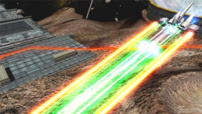 ▲キャノンモード時のメイン射撃では、雨のようにビームを発射する。