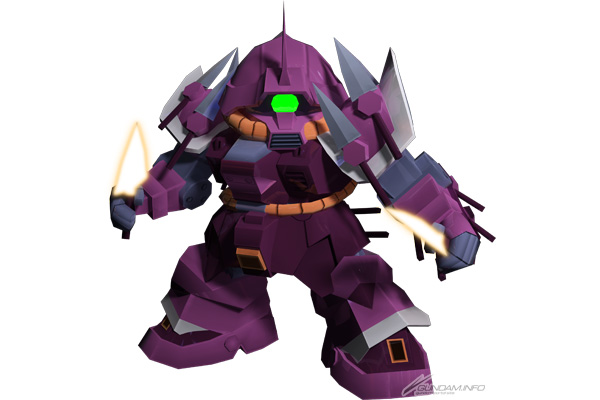 『機動戦士ガンダムUC』に登場するMS。爆風によるダメージと、スロウの効果を持った武器3「ジャイアント・バズ」が特徴で、乱戦でその性能をいかんなく発揮する。スキル2「リミッター解除」が発動すれば攻撃速度も増加するため、より相手を追い込みやすくなる。