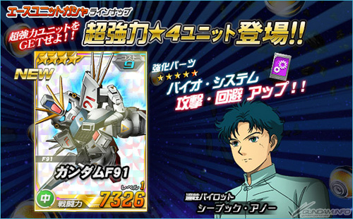 Starting today, the Ace Unit Gasha adds a four-star Banshee (NT-D), three-star GN-XIII (A-LAWS colors), and three-star Blue Destiny Unit 1.