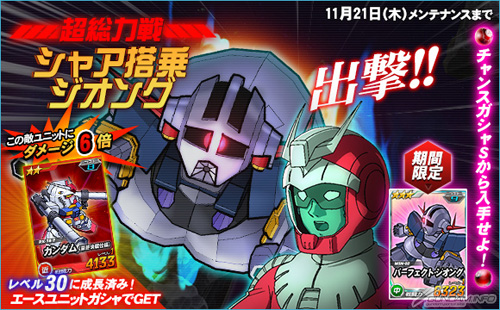 From 11/14 through 11/22, you can take on Char's Zeong in a super group battle. Play through missions over the next week for a chance to encounter it.