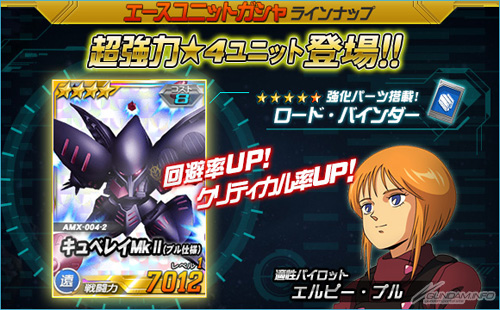 エースユニットガシャには、同じく本日より「★4 キュベレイMkII(プル仕様)」が追加された。