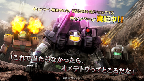 キャンペーン期間中は、設計図報酬として支援タイプ「ガンキャノンII LV1」の設計図がドロップするようになる。命中精度の高いビーム砲と高威力タックルを持つこのスペシャルな機体を、キャンペーンに参加してぜひ手に入れよう。