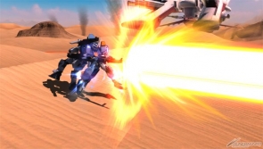 ▲砲身を敵に向けて攻撃するメイン射撃「ビームキャノン」は下へ向けることが出来ない。なるべく地上戦を心がけよう。