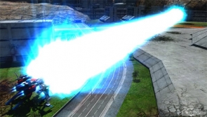 ▲特殊射撃「トリプルメガソニック砲」は、発射中にレーザーをボタン操作で少し曲げる事ができる。上手く狙ってみよう。
