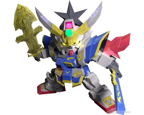 「BB戦士 三国伝」に登場する武将。武器3「爪龍刀&龍帝剣」は2ヒットする1段格闘武器で攻撃発生速度に優れ、バレットゼロの効果を持つ。「防御指揮」と「突撃指揮」の2つの指揮スキルを持ち、SPゲージを確保後に一定のHPを保つことでチームの戦力アップに貢献できる。
