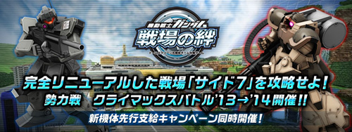 「戦場の絆」本日より勢力戦「クライマックスバトル’13~’14」開催!新機体先行支給キャンペーンも!