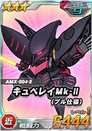 「キュベレイ」を倒した際に引くことができるチャンスガシャには、「★3 キュベレイMk-II(プル仕様)」を獲得できるチャンスがあるほか、エースユニットガシャには「キュベレイ」に対し6倍の攻撃力を発揮する「★2 百式」が追加される。
