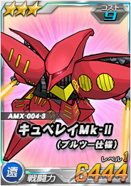 「ハマーン搭乗キュベレイ」を倒した際に引くことができるチャンスガシャSには、「★3 キュベレイMk-II(プルツー仕様)」を獲得できるチャンスがあるほか、エースユニットガシャには「ハマーン搭乗キュベレイ」に対し6倍の攻撃力を発揮する「★2 ΖΖガンダム」が追加される。
