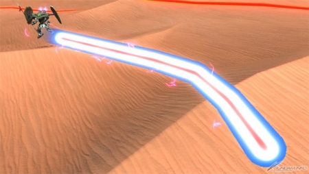 ▲レバー後サブ射撃で使用できる「クスィフィアス・レール砲」は、弾速が早いためとっさの迎撃に強い。