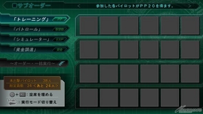 | Training | Increases each participating pilot's PP by 20. PP can be spent in "Pilot Training" to raise stats and unlock skills. |