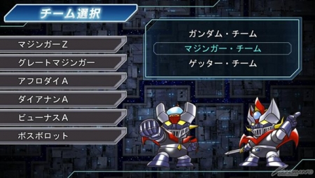 At the beginning of the game, you'll choose the Gundam Team, Mazinger Team, or Getter Team to use.