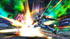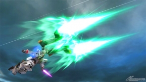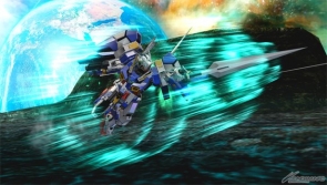 「機動戦士ガンダム00V」よりアヴァランチエクシアが参戦!「雪崩(アヴァランチ)」という名を持つ高機動用追加ユニットを装備したエクシア。ガンダムはGNドライヴの効果により驚異的な空中制御能力を持つがスピードでは航空機に比べ劣っていた。この装備は、エクシアに対して驚異的な高速移動能力を付加する。
