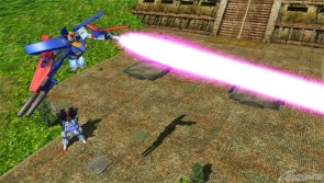 ▲遠距離から攻撃できる武装を持ち、好きな距離からオールレンジ攻撃とチャージ射撃で攻撃できるコスト2500の射撃寄り万能機体。後格闘のビームスパイクは、射出された後、敵との距離に応じてスパイクによる突進とビームによる射撃を使い分けて攻撃する。それに加えてサブ射撃は、ドラグーンシステムを敵機に向けて飛翔させるか、自機周辺に停滞させるかを任意で出し分けることができる。あわせて使ってみよう。これらの武装で動かした敵には、メイン射撃や、弾速に優れ当てやすい照射ビームのチャージ射撃で追撃して、ダメージを取っていきたい。豊富な射撃武装と高い機動力を活かすためにも、敵機と離れた状態を維持して射撃戦に持ち込もう。