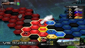 「VS.コンクエスト」は、全国のプレイヤーが複数の勢力に分かれてエリア争奪戦を繰り広げる1人用モードで、モード内ではゲームプレイで手に入れたポイントを使って機体を強化するなど、自分好みにカスタマイズした機体が使用可能。
