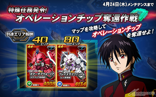 同じく本日より4月24日(木)までの期間限定で開催される特殊任務「オペレーションチップ奪還作戦」では、開催期間中に「特殊任務マップ」に登場する強力な敵を倒すことで「オペレーションチップ」を獲得することができる。
