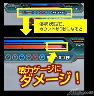 ▲画面左上に配置された「戦力ゲージ」で現在の状況を確認できる。