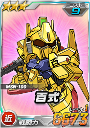 「ジュドー搭乗フルアーマーΖΖガンダム」を倒した際に引くことができるチャンスガシャSには「★3 ΖΖガンダム」が、「ΖΖガンダム」倒した際に引くことができるチャンスガシャには「★3 百式」を獲得するチャンスがある。
