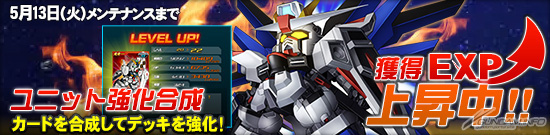 本日より5月13日(火)までの期間中、ユニット合成時に取得できるEXPが通常よりUPするイベントがスタートした。EXPをより多く獲得できるこの機会に、手に入れたユニットをどんどん強化していこう。