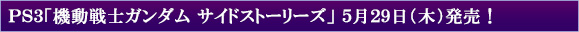 | 機動戦士ガンダム サイドストーリーズ 発売日 : 2014年5月29日予定 価 格 : 通常版 7,600円+税/ 限定版「Limited Edition」13,790円+税 ジャンル : ドラマチック&ハイスピードアクション 対応機種 : PlayStation®3 プレイ人数: 1人 CERO : A 開 発 : B.B.スタジオ |