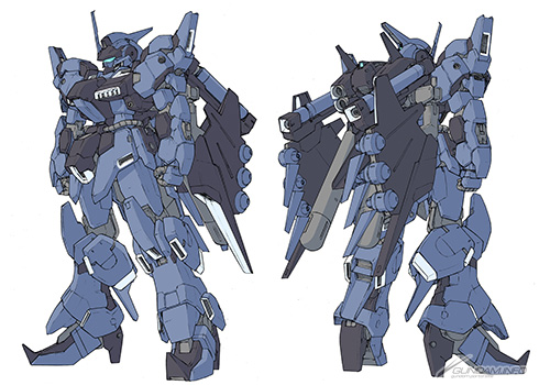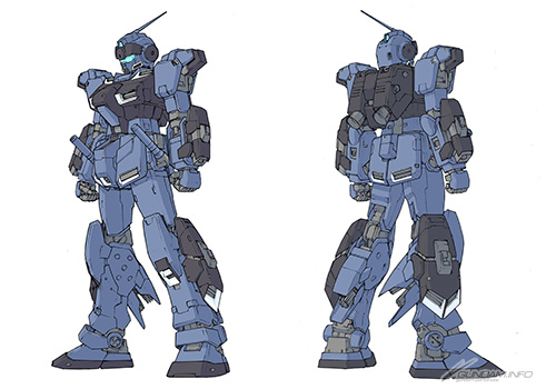 バンダイナムコゲームスさんとの打ち合わせでは、まず大まかなイメージラフを頂き、そこからジム・コマンド系ジム・スナイパーIIをベースに、ガンダム4号機・5号機などのパーツを付けるといった方向にまとまりました。一見するとゴテゴテしていますが、ぎりぎりその時代のデザイン枠から出ないようにしています。脚部のスラスターなどはガンダム6号機由来ですね。