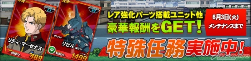本日から6月3日(火)までの期間限定で、特殊任務「オペレーションチップ奪還作戦」がスタート。キャンペーン期間中は期間限定のマップを進めることで、「★2 リディ・マーセナス」や「★2 リゼル(MS)」など、強力な報酬を獲得することができる。ぜひともチャレンジして報酬を手に入れよう。