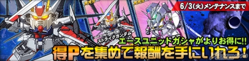 同じく本日より6月3日(火)までの期間限定で開催される「得Pイベント」は、「エースユニットガシャ」や「11連エースユニットガシャ」を引くと獲得できるポイント(得P)の合計値に応じて、様々な報酬が得られるというもの。「得P」を貯めて「★3 ストライクガンダムI.W.S.P」や「★3 Ζガンダム3号機」などの豪華報酬を手に入れよう。