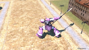 地上での格闘戦に特化したガンダム。機動力を活かした2刀ビームダガーと、専用モーションによるグレネード投擲など、トリッキーな近接戦闘が特徴。
