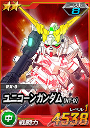 【右】「フロンタル搭乗シナンジュ」に対し6倍の攻撃力を発揮する「★2 ユニコーンガンダム(NT-D)」