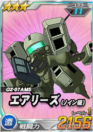 同機を倒した際に引くことができるチャンスガシャには、「★3 エアリーズ(ノイン機)」を獲得できるチャンスがあるほか、エースユニットガシャには「トールギス」に対し、3倍の攻撃力を発揮する「★2 ガンダムヘビーアームズ」が追加される。