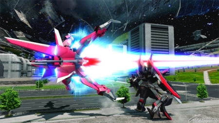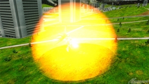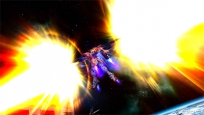 ▲特殊射撃武装では呼び出したイージスガンダムが、レバーNではスキュラを発射、レバーN以外では敵に掴みかかり自爆する。