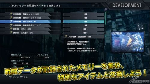 「バトルメモリー」は、戦闘報酬で手に入るバトルメモリーの設計図をコンプリートすることで獲得可能。