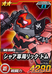また、エースユニットガシャには「アムロ搭乗G-3ガンダム」に対し6倍の攻撃力を発揮する「★2 シャア専用リック・ドム」が追加される。