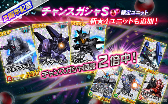 同機を倒した際に引くことができるチャンスガシャSには、「★4 デルタプラス(MS)」、「★4 メッサーラ(MS)」、「★4 グラハム専用ユニオンフラッグカスタム(MS)」を獲得できるチャンスがあるほか、これまで超ユニットガシャでしか手に入らなかった★4ユニットも多数登場。