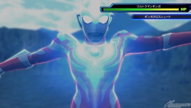 全身のクリスタルを青く輝かせて、根岸拓哉氏の熱い掛け声とともに放つ光線技「ギンガクロスシュート」。
