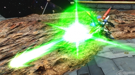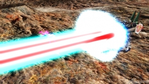 ▲メイン射撃武装では「ビームライフル」からビームを発射する。