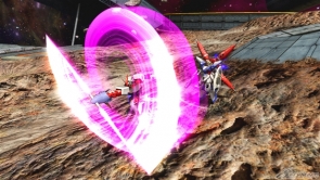 ▲バーストアタックは「ドラグーンシステム包囲展開」。ビームサーベルで斬り上げた敵をドラグーンで囲み、爆発させるコンボ攻撃だ。