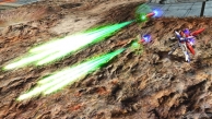 ▲上半身と下半身を分離させて攻撃するフォースインパルス形態のサブ射撃。敵の攻撃を回避しながらビームを撃つことができるぞ。