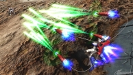 ▲特殊格闘武装では、展開したドラグーンがレバー入力に応じた攻撃を行う。レバー左右以外ではドラグーンを4つ展開、レバー左右ではレバー方向にドラグーンを2つ展開し、それぞれビームの一斉射撃を行う。