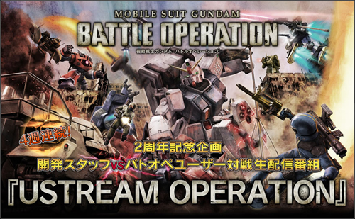 バンダイナムコゲームスより好評配信中のPS3専用オンラインバトルアクションゲーム「機動戦士ガンダム バトルオペレーション」では、サービス開始2周年突破を記念して生配信番組「USTREAM OPERATION」が、本日7月18日(金)より4週連続で配信される。