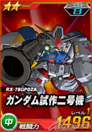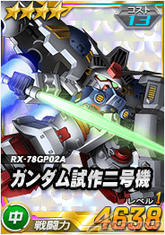 ※「★2 ガンダム試作二号機」と同一ユニットを強化合成に使用し、強化パーツのLvを上げると「コウ搭乗 ガンダム試作三号機デンドロビウム」への攻撃力倍率が「100%」上昇します。