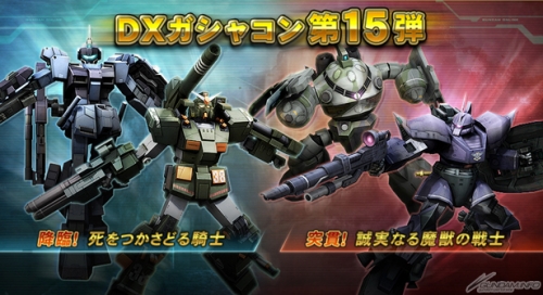 好評配信中のDXガシャコンvol.15では、コラボレーション機体2機に「フルアーマーガンダム」、「ラムズゴック」の2機を加えた計4機体が実装されている。