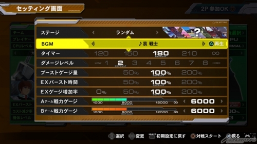 また、デフォルト設定状態でも「プレミアムGサウンドエディション」のBGMがバトル中に再生されるようになり、各機体を選んだときに再生されるBGM候補が追加される。
