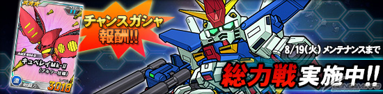 同機を倒した際に引くことができるチャンスガシャには「★3 キュベレイMk-II(プルツー仕様)」を獲得できるチャンスがあるほか、エースユニットガシャには「ΖΖガンダム」に対し3倍の攻撃力を発揮する「★2 R・ジャジャ」が追加される。